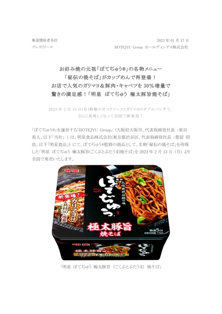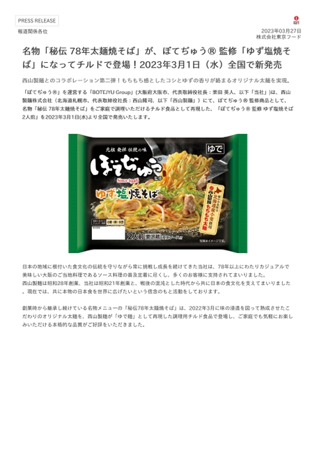 ぼてぢゅう®︎グループ × 西山製麺株式会社「ゆず塩焼そば」を販売 PR / 3.27.2023