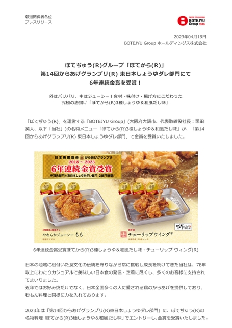 第15回からあげグランプリ®︎金賞受賞「ぼてから®︎」PR / 4.24.2024
