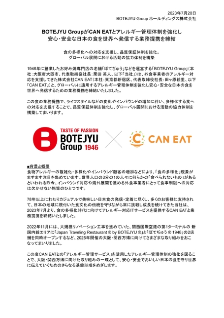 ぼてぢゅう®︎グループ ×「CAN EAT」アレルギー管理体制を強化 PR / 7.20.2023