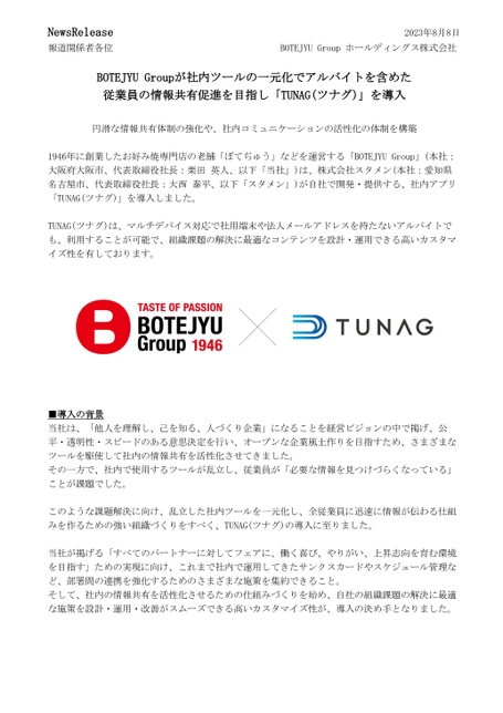 ぼてぢゅう®︎グループ ×「TUNAG」社内ツールの一元化 PR / 8.8.2023