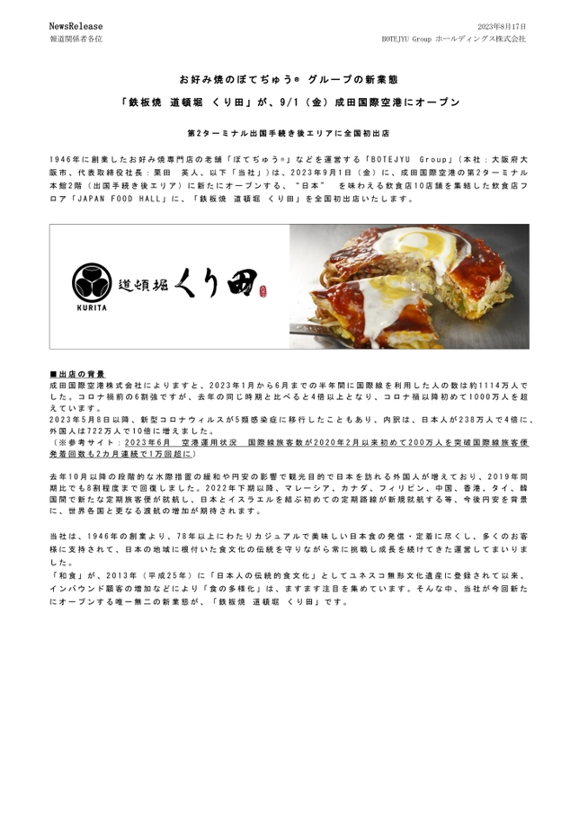 新業態「鉄板焼 道頓堀 くり田」9/1(金) オープン!! PR / 8.17.2023