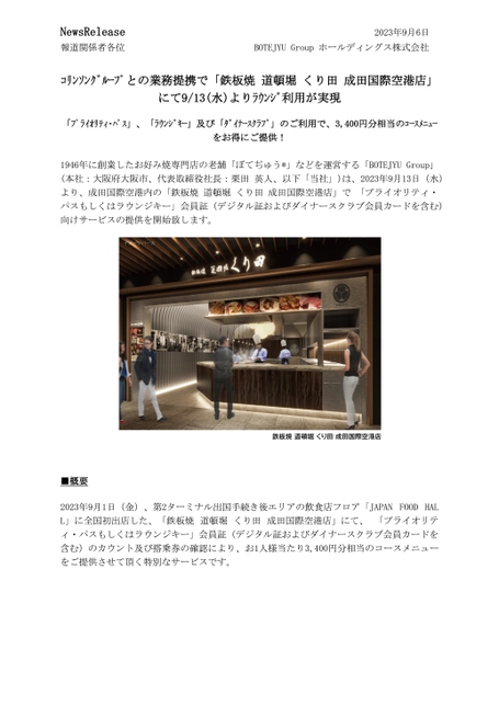 鉄板焼 道頓堀 くり田「プライオリティ・パス」サービス開始! PR / 9.6.2023