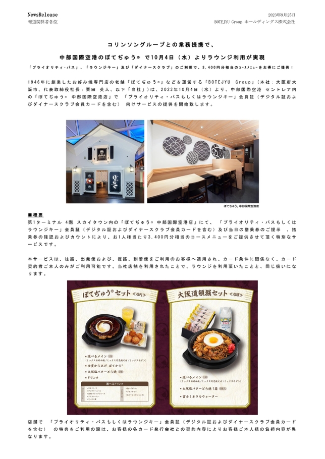 ぼてぢゅう®︎ 中部国際空港店「プライオリティ・パス」サービス開始! PR / 9.25.2023