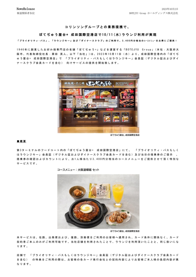 ぼてぢゅう屋台®︎ 成田国際空港店「プライオリティ・パス」サービス開始! PR / 10.2.2023