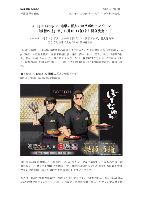 BOTEJYU®︎ Group × TV「進撃の巨人」コラボキャンペーン ! PR / 12.1.2023