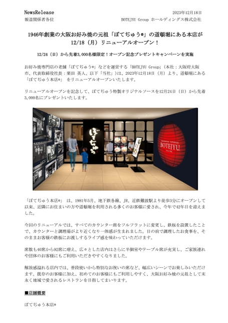ぼてぢゅう本店®︎ リニューアルオープン!! PR / 12.18.2023