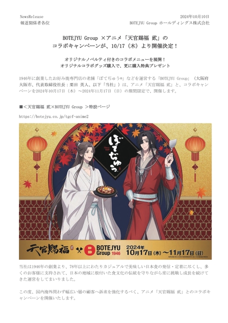 BOTEJYU®︎ Group × アニメ「天官賜福 貮」コラボキャンペーン ! PR / 10.10.2024