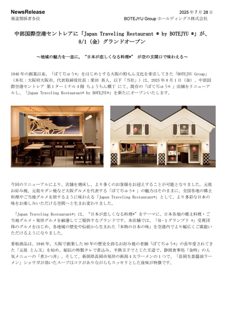 「Japan Traveling Restaurant® by BOTEJYU®」グランドオープン!! PR / 7.28.2025