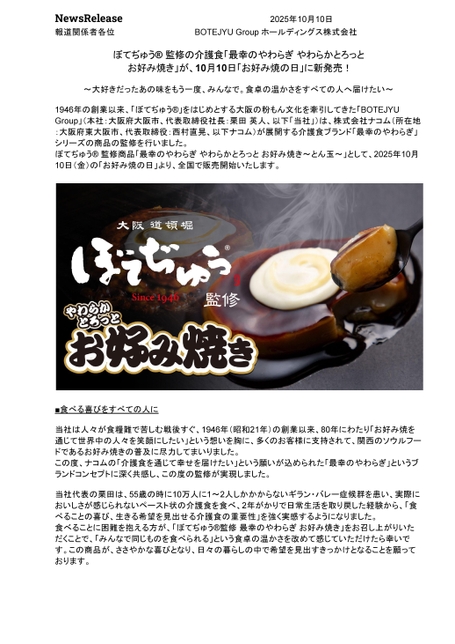ぼてぢゅう®監修:介護食【最幸のやわらぎ やわらかとろっと お好み焼き】新発売!PR / 10.10.2025