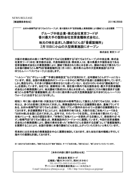 讃岐うどん専門店「香蔵製麺所」出店 PR / 2.8.2011