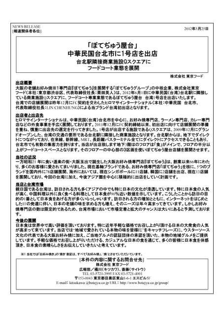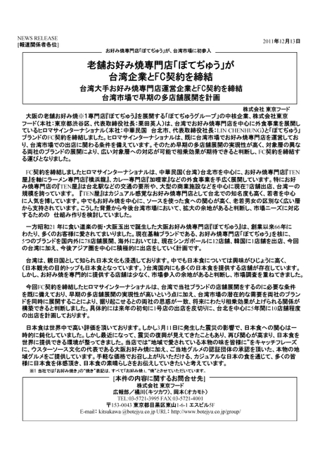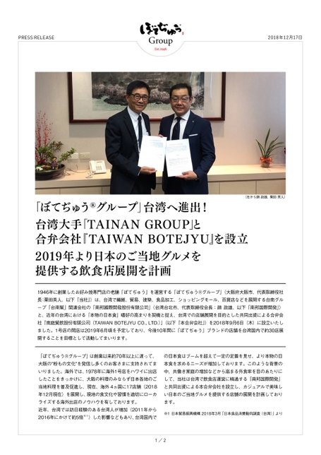 BOTEJYU®︎ Group 台湾企業とFC契約 PR / 12.13.2011