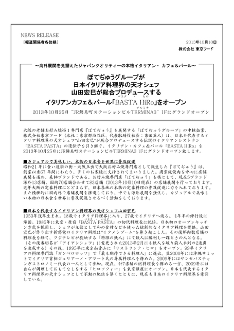 イタリアンカフェ&バール「BASTA HiRo®︎」出店 PR / 10.10.2013