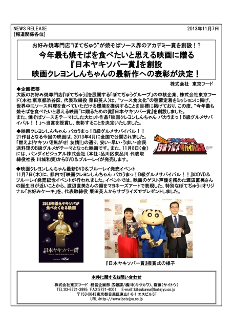 日本ヤキソバー賞を創設 PR / 11.7.2013