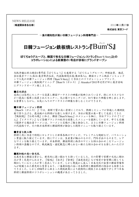 日韓フュージョンレストラン「Bum'S」出店 PR / 12.27.2013