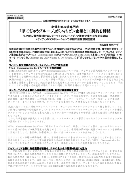 BOTEJYU®︎ Group フィリピン企業とFC契約 PR / 2.27.2015