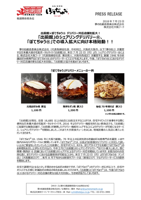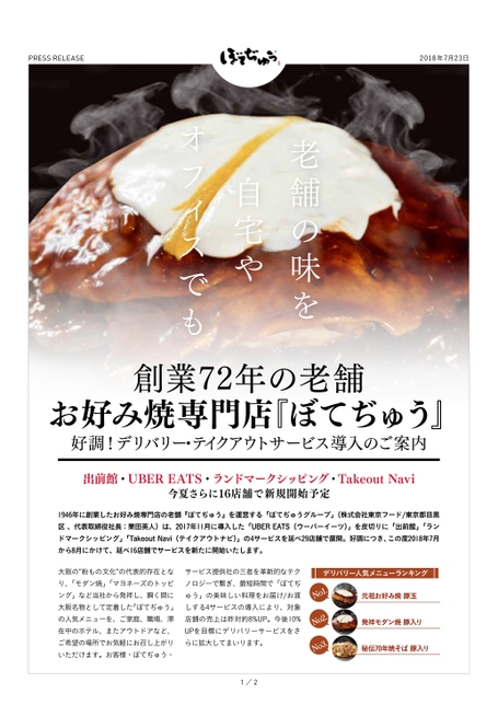 ぼてぢゅう®︎ × デリバリー・テイクアウトサービス導入 PR / 7.26.2018