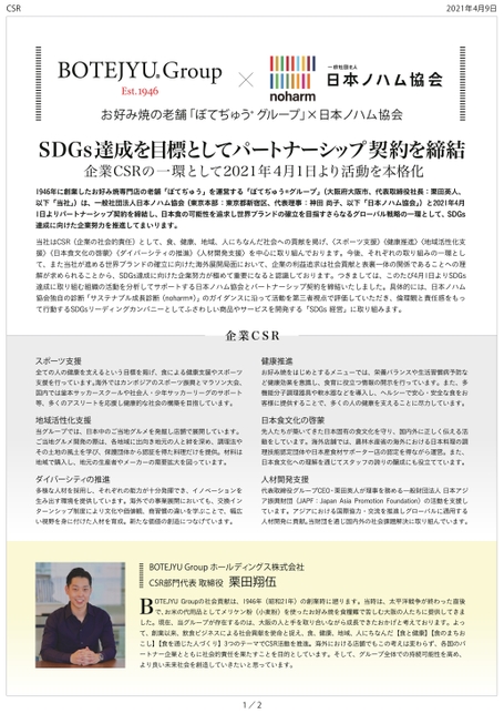 ぼてぢゅう®︎グループSDGs × 日本ノハム協会 PR / 4.9.2021